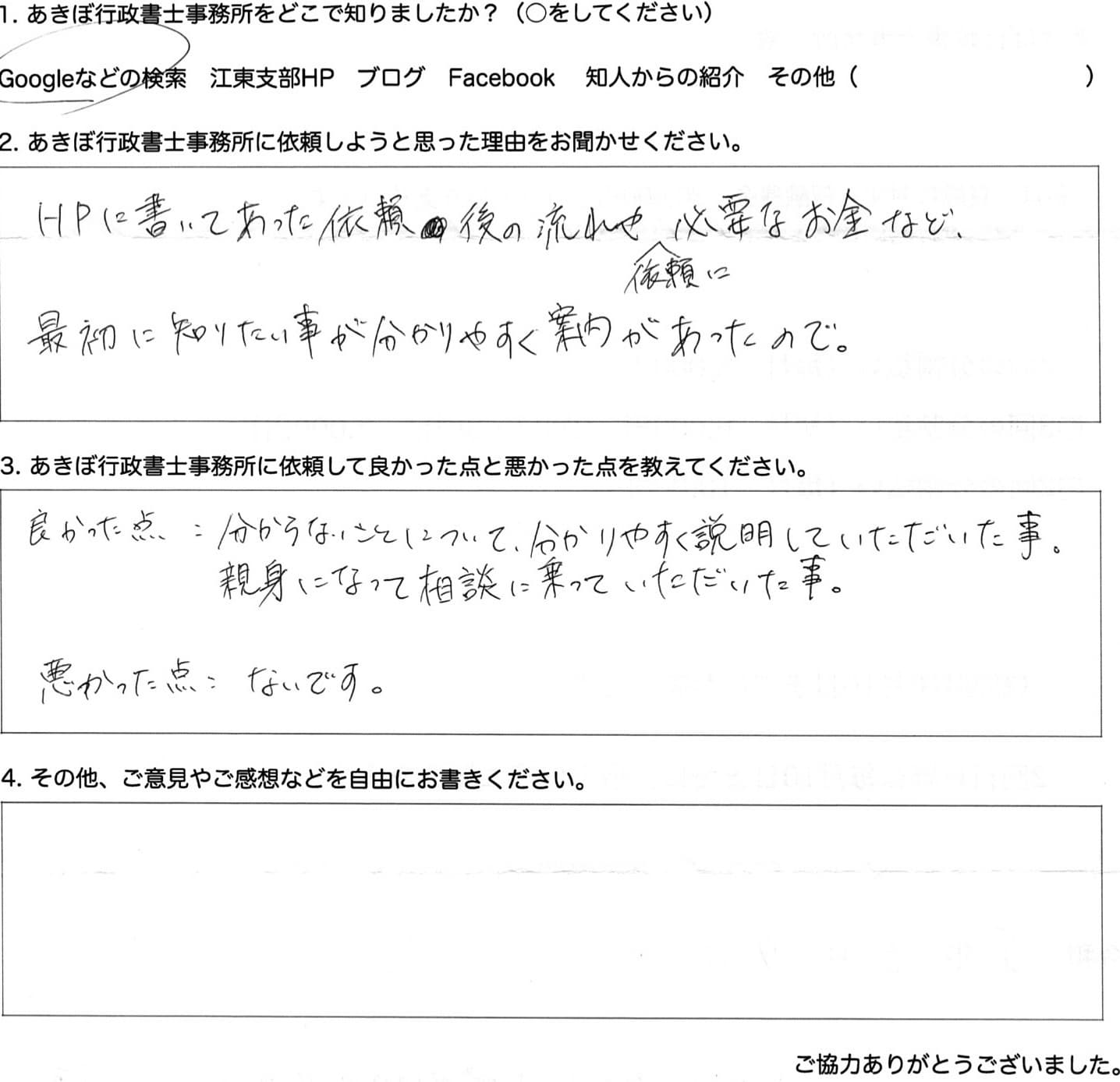 あきぼ行政書士事務所に依頼しようと思った理由をお聞かせください。